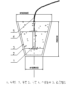 如圖所示,埋設(shè)時(shí),將無應(yīng)力應(yīng)變計(jì)筒大口向上,固定在埋設(shè)位置,然后在筒內(nèi)填滿埋設(shè)點(diǎn)附近的混凝土,人工搗實(shí)。
